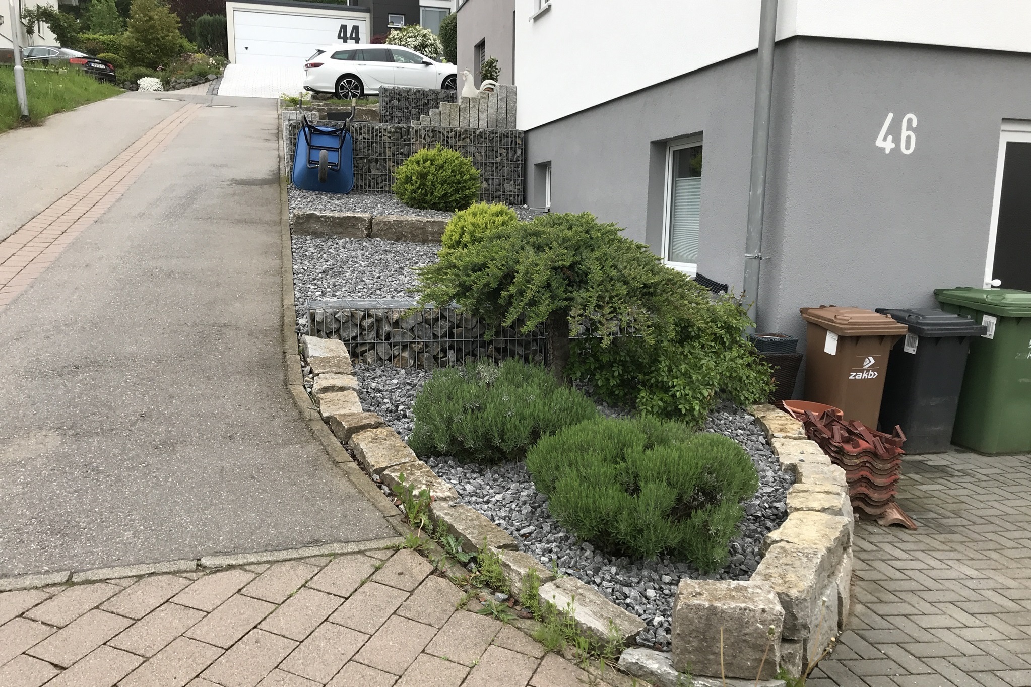 Beispiel 1: Hauszugang mit Sitzplatz und Steingarten